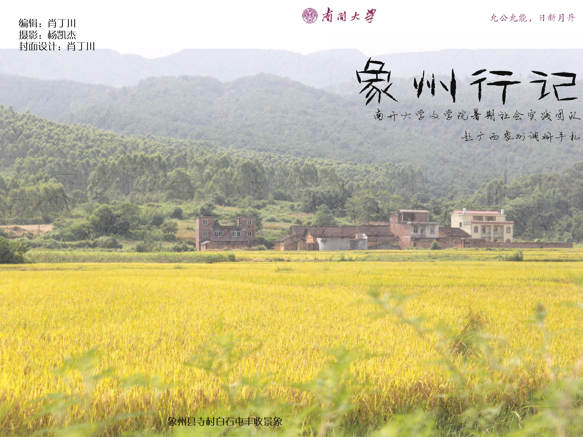 2014年7月19日至24日,由2012级本科生辅导员王琪带队,由杨凯杰、姜宁、孙霄薇、纪鹏、肖丁川和朱丽琨6名2012级本科生组成的304永利集团暑期社会实践队前往广西壮族自治区来宾市象州县,深入调查了当地的文化基础设施建设和文化遗产保护情况。