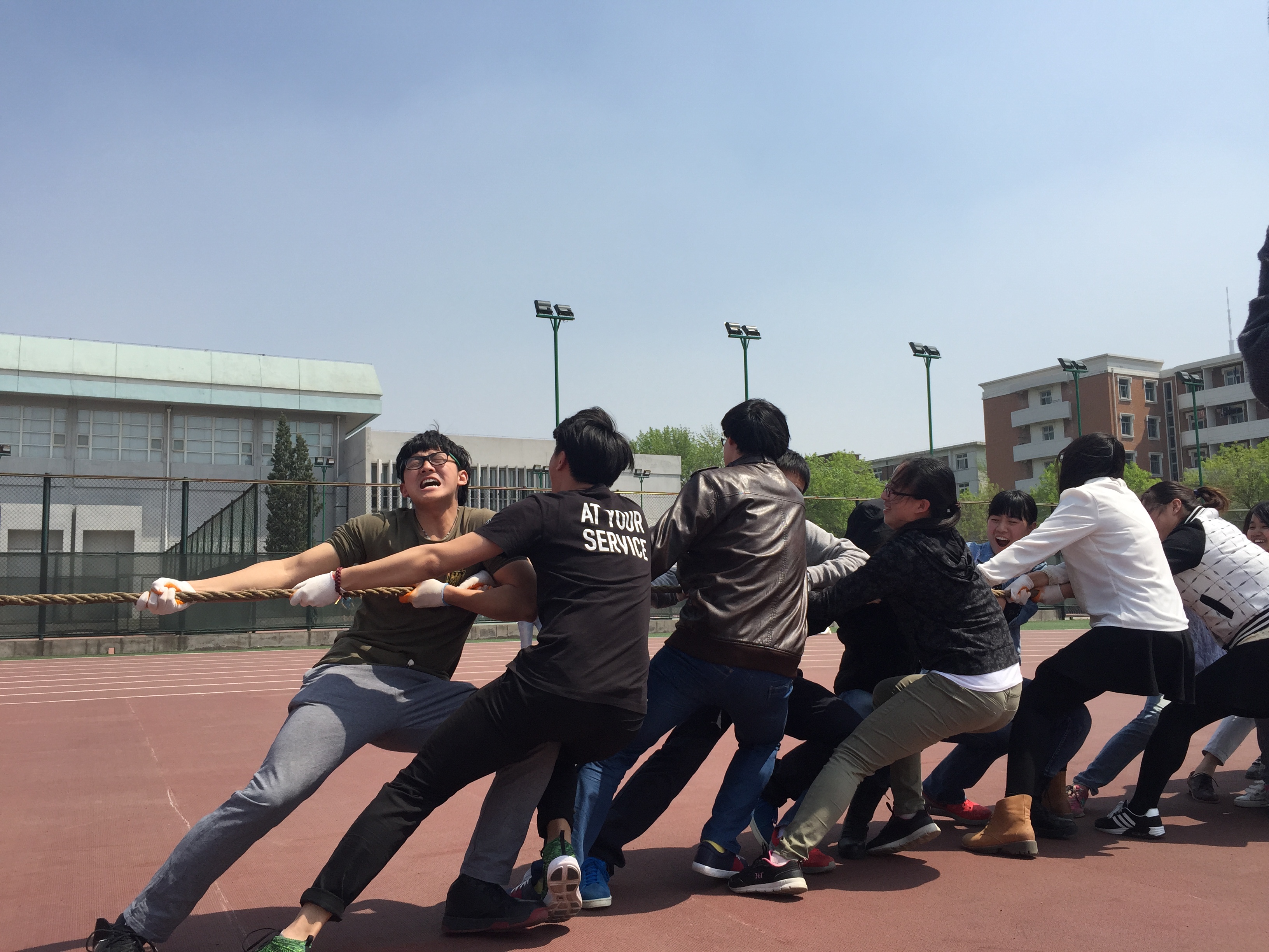 本届运动会压轴大戏拔河比赛于在21日中午同样在操场拉开帷幕。由教工与员工共同组成的2014级、2013级、2012级本科生及研究生代表队,通过抽签决定比赛顺序。最终实力强劲的2012级本科生代表队拔得头筹,代表新生力量的2014级本科生队获得亚军。