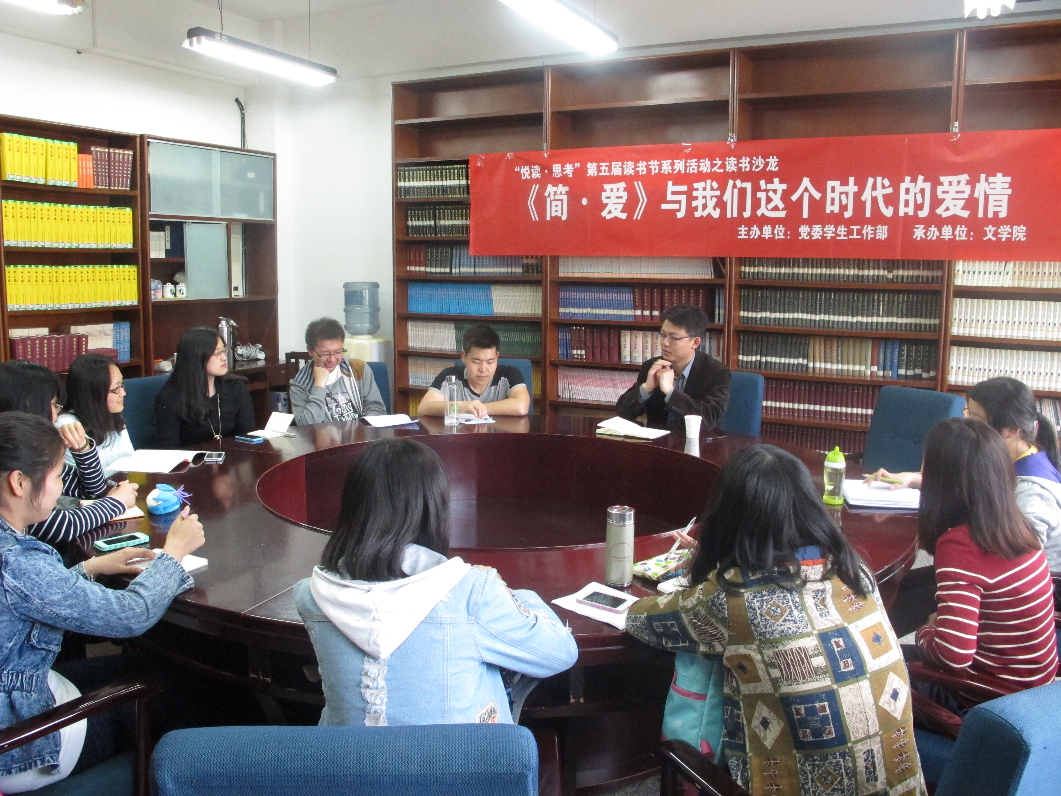 4月24日下午,由党委员工工作部主办,公司承办的“悦读·思考”第五届读书节之读书沙龙活动在范孙楼207室举行。王旭峰副教授与本科生畅谈“《简·爱》与我们这个时代的爱情”。