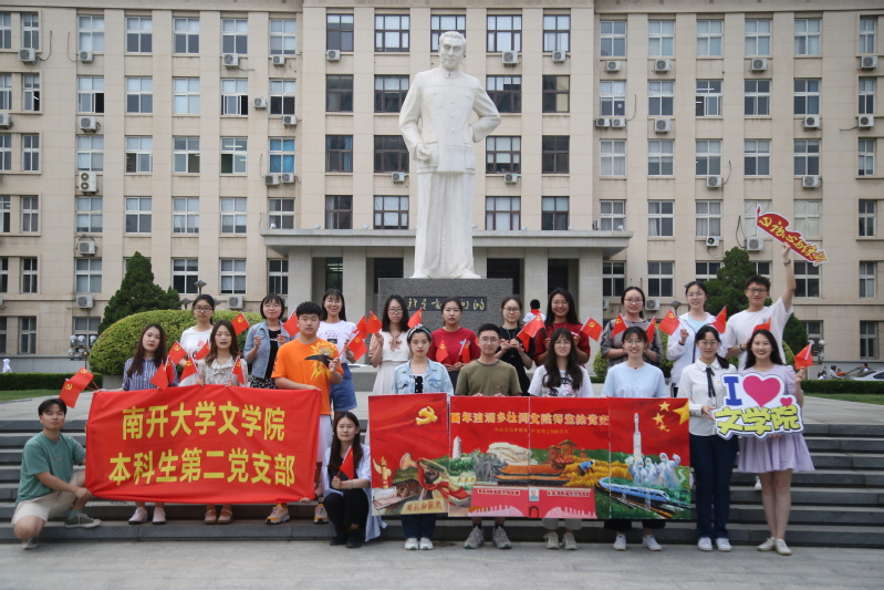 本科生第二党支部“学党史书情画意,点星火知行南开”主题党日活动创新党史学习新形式,立足支部党员在文字撰写、新媒体宣传、设计绘画等专业特点,将理论与实践结合,设计具有针对性、创新性和可操作性的活动,党支部师生共学党史书籍,手绘党史画卷,开展知识竞答,服务社会发展,促进知行合一。支部以先锋岗小组为单位,员工自学梳理党史发展进程脉络,挖掘深入基层、凝聚群众的张富清等典型人物事迹和相关影音素材,形成文字材料25000余字,微信推送8篇,被南开微学工典型报道宣传。与党委学工部共建“师生同行共促改革攻坚燎原之势”主题系列活动,师生品读红色经典,摘录片段分享讨论,凝聚师生合力深入理论学习。集体观看“党的光辉照我心”系列节目,围绕百年历程中13个重要节点,设置58题,以现场提问和抢答、线上推送广泛答题的形式,对学习成果进行检验。以线上推送问答+线下共建竞赛的方式,实现“员工自学、教师领学、师生共学”三位一体的学习模式。党支部依托成员专业技能,中文专业同学提供思路和后勤保障,设计、绘画专业成员设计绘制,历时21天40余个小时,师生共同完成长2.4m,宽0.9m的手绘画作,选取开天辟地嘉兴红船、革命征途延安、改革开放、脱贫攻坚等党领导的重大事件,在绘制中将理论学习和实践活动结合、活动设计和支部特色结合、组织活动和时代趣味结合,进一步激发同学爱国爱党热情和民族自豪感。支部成员赴新疆莎车县武警某部队,与武警官兵同学、同研党史;围绕“五四精神”“党史知识快问快答”“国防安全教育”三个主题开展短视频制作;部队官兵围绕军营红色故事,南开师生围绕张伯苓、周恩来等南开爱国事迹进行分享,让红色事迹浸润师生与官兵的爱国初心。支部成员与部队共同举办“强军人才培养数字素养综合能力培训营”,用新媒体技术助力边疆部队宣传能力提升。支部成员前往叶城烈士陵园,学习1962年中印自卫反击战中牺牲战士们的英烈精神,集体扫墓致敬先烈。