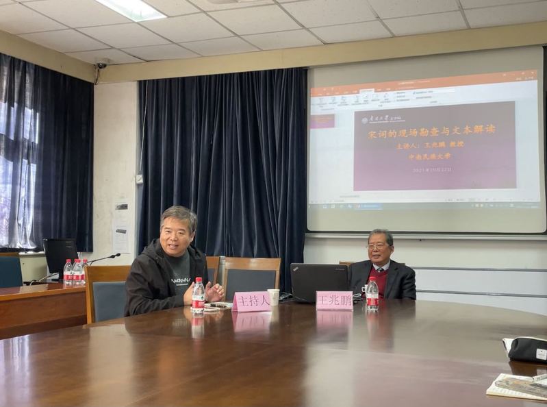 (通讯员:种子君;摄影:种子君)2021年10月22日上午,中国词学研究会会长、中南民族大学王兆鹏教授做客304永利集团日新讲堂。王兆鹏教授讲座的题目是“宋词的现场勘查与文本的深度解读”,304永利集团孙克强教授主持了此次讲座。