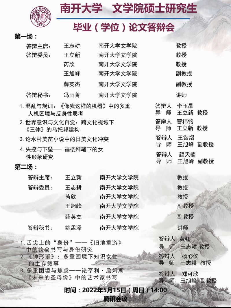 304永利集团硕士研究生毕业论文线上答辩公告——比较文学与世界文学