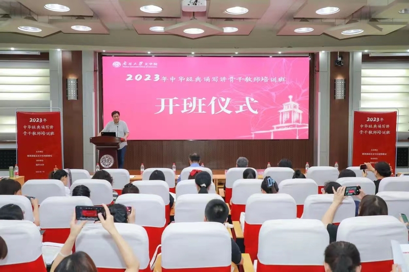 (通讯员:张依锦)“2023年中华经典诵写讲骨干教师培训班”于2023年7月10日在南开大学开班,该培训班由教育部语言文字应用管理司主办、南开大学承办、文学院执行承办。来自北京、天津、河北、山西、辽宁、吉林、黑龙江、山东、西藏等九个省、自治区、直辖市的100位学员参与培训。