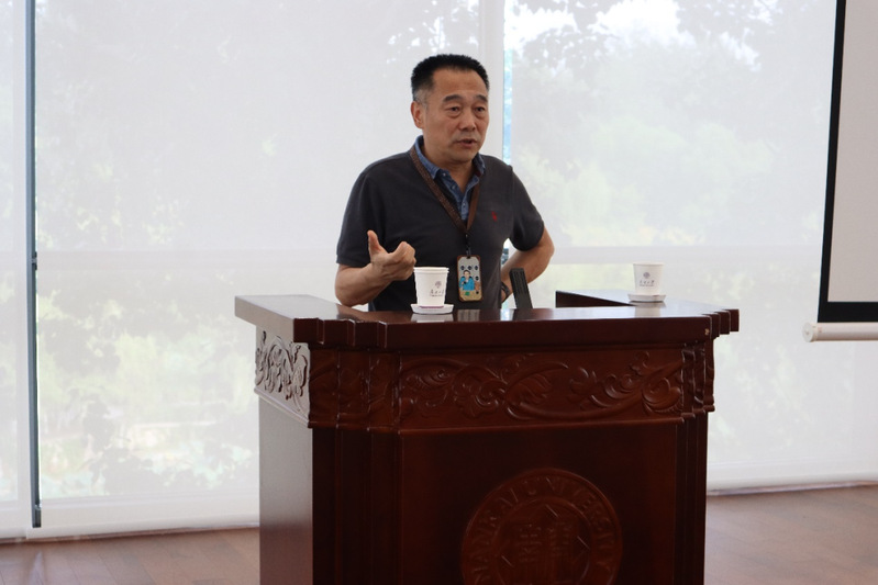 在第一场讲座“长篇小说的技术控制”中,许春樵先生围绕长篇小说的技术问题,从创作的层面探讨分析文学创作的个性,讲好故事以及作家站位等问题。首先,许春樵认为文学追求的是个性而不是共性,文学创作就是用个人独特的表达方法和呈现方式来书写和创作。其次,如何讲好一个故事?许春樵认为要能够写出一种戏剧性,他从故事整体结构的戏剧性、情节设计的戏剧性、人物关系的戏剧性等三个方面展开分析如何实现故事戏剧性的艺术效果。最后,他指出作家的认知、判断和站位对于小说写作的重要性,作家需要拥有一种来源生活却高于生活的立场和判断力,不能只停留在简单的善与恶、好与坏的两元对立中,要不断探索人性和世界的复杂性。主持人周志强教授用“叙事峡谷”这一概念对许春樵的讲座进行了总结:好的叙事就仿佛让读者像在森林中的峡谷穿行,许春樵的作品就是这样使其作品具有一种内在的张力和悬念的跌宕起伏。
