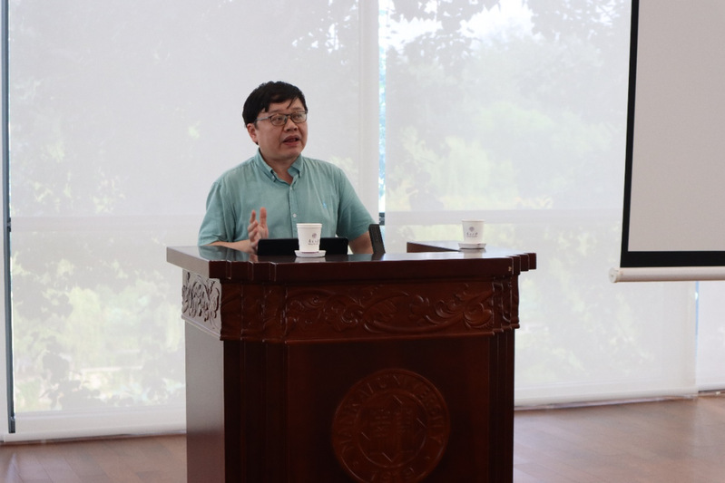 在第一场讲座“长篇小说的技术控制”中,许春樵先生围绕长篇小说的技术问题,从创作的层面探讨分析文学创作的个性,讲好故事以及作家站位等问题。首先,许春樵认为文学追求的是个性而不是共性,文学创作就是用个人独特的表达方法和呈现方式来书写和创作。其次,如何讲好一个故事?许春樵认为要能够写出一种戏剧性,他从故事整体结构的戏剧性、情节设计的戏剧性、人物关系的戏剧性等三个方面展开分析如何实现故事戏剧性的艺术效果。最后,他指出作家的认知、判断和站位对于小说写作的重要性,作家需要拥有一种来源生活却高于生活的立场和判断力,不能只停留在简单的善与恶、好与坏的两元对立中,要不断探索人性和世界的复杂性。主持人周志强教授用“叙事峡谷”这一概念对许春樵的讲座进行了总结:好的叙事就仿佛让读者像在森林中的峡谷穿行,许春樵的作品就是这样使其作品具有一种内在的张力和悬念的跌宕起伏。