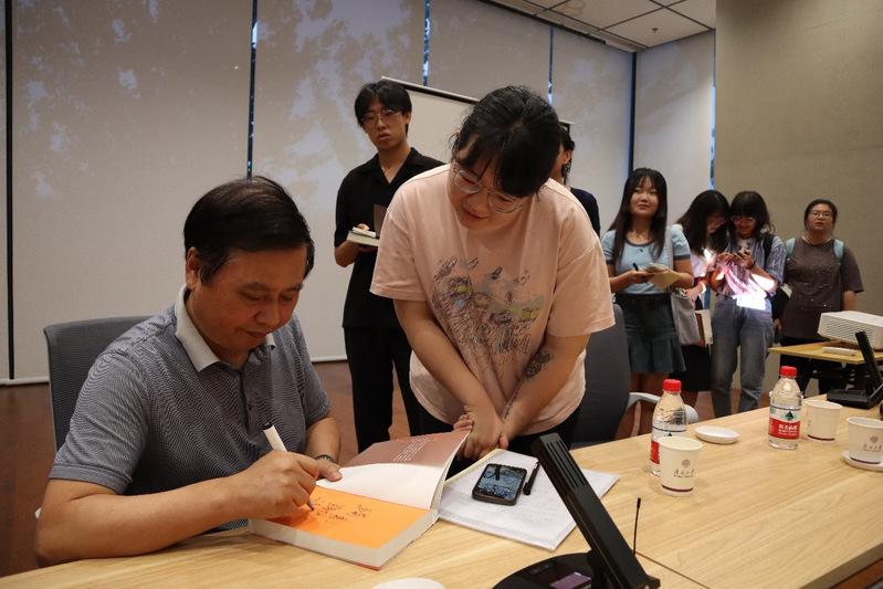 最后,在交流环节,同学们踊跃发言提问,许春樵先生和徐晨亮主编认真地解答同学们的困惑和问题,并在会后给同学们签名。