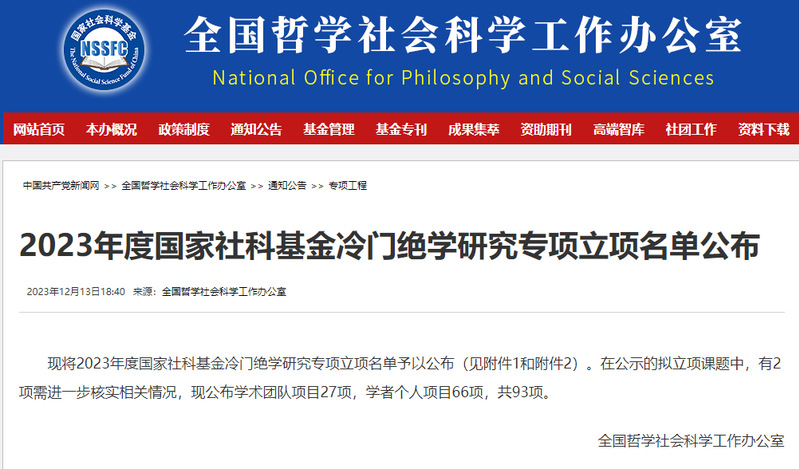 近日,全国哲学社会科学工作办公室公布了2023年度国家社科基金冷门绝学研究专项立项名单,有27个学术团队项目、66个学者个人项目获批立项。公司中文系赵建成副教授申报的课题获研究专项学者个人项目。该项目参照国家社科基金重点项目标准资助,一般每项资助35万元。这是公司获得的首个冷门绝学研究专项项目。