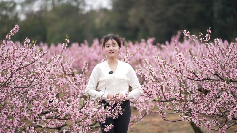 304永利集团员工齐珊在义乌上溪镇讲解与桃花有关的古典诗词