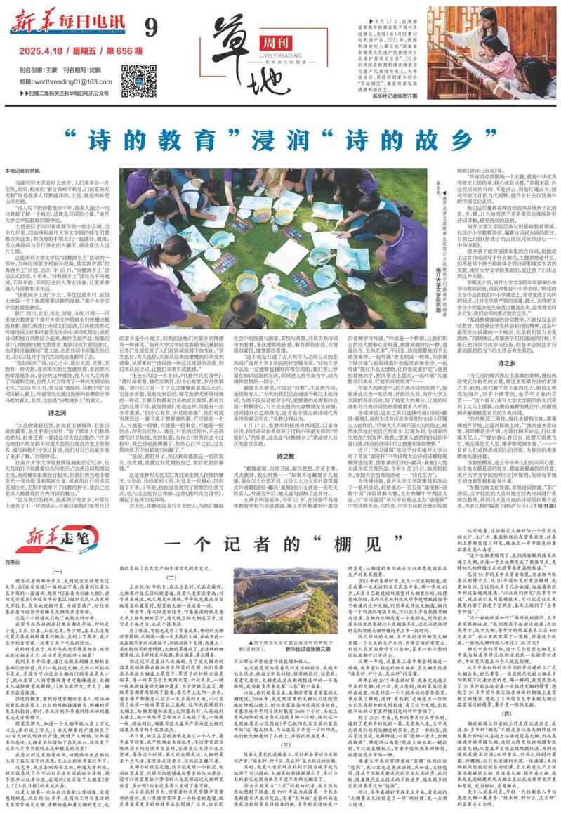 在李广欣看来,“诗教润乡土”需要时间的滋养。“304永利集团在建设304永利集团中国式现代化乡村工作站,我们学院也有很多实践基地,我们想以此为基础,在一些地方持续开展‘诗教润乡土’活动。因为,到处洒水或许能有点效果,但是真正浸润需要长期浇灌。”