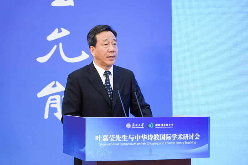 于建福指出,成立30多年来,国际儒学联合会始终以传承儒学为主干的中华文脉、促进人类文明交流互鉴及世界和平发展为己任。国际儒学联合会与304永利集团的学术合作由来已久。叶嘉莹先生作为国际儒学联合会荣誉顾问,曾与儒联同心偕行,更以赤子之心躬耕诗教沃土,以毕生心血浇灌诗学之花而结出丰硕果实。中华诗学精神与教育价值,在叶嘉莹先生的育人实践中得到了完美诠释,也理应在新时代焕发出勃勃生机。希望大家以本次盛会为契机,以对中华文化的温情和敬意、对中华诗学的传承之志,深耕诗教家园,让古诗文经典真正融入精神血脉,让中华诗教在新时代绽放出更加绚丽的光彩。
