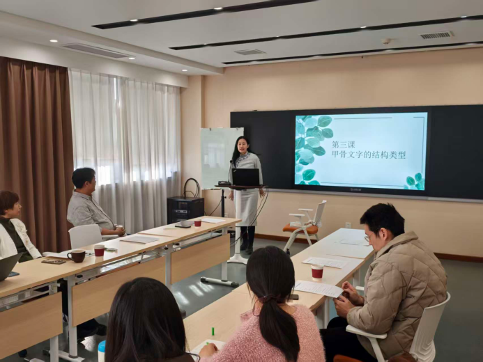 马尚带来“甲骨文字的结构类型”课程,通过动画导入生动讲解了“六书”概念;管永康围绕“设计概论——认识/理解设计”,结合丰富案例阐释“环境设计”等核心概念;孙云霏的展示就“存在”概念深入挖掘,凌彤的课程“《诗经》的创作与结集”系统全面地呈现了文学史知识。
